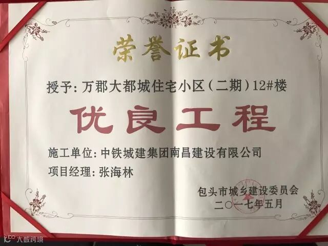 荣获内蒙古包头市优良工程