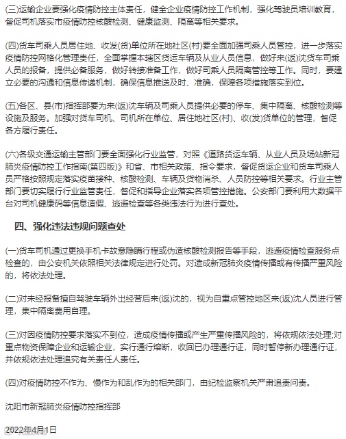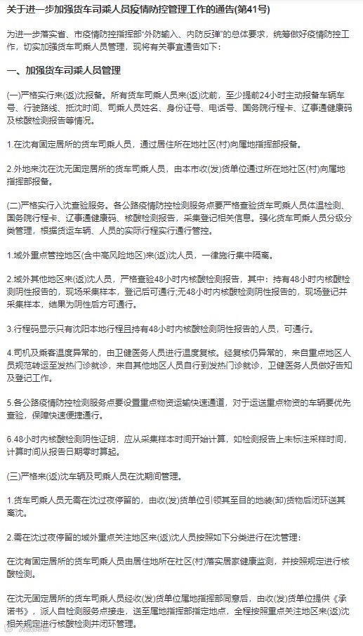 2.货运任务结束后,外地货车需在企业人员伴行下原路返回离开辽阳,确认销号;需要住宿的,到属地中转驿站住宿