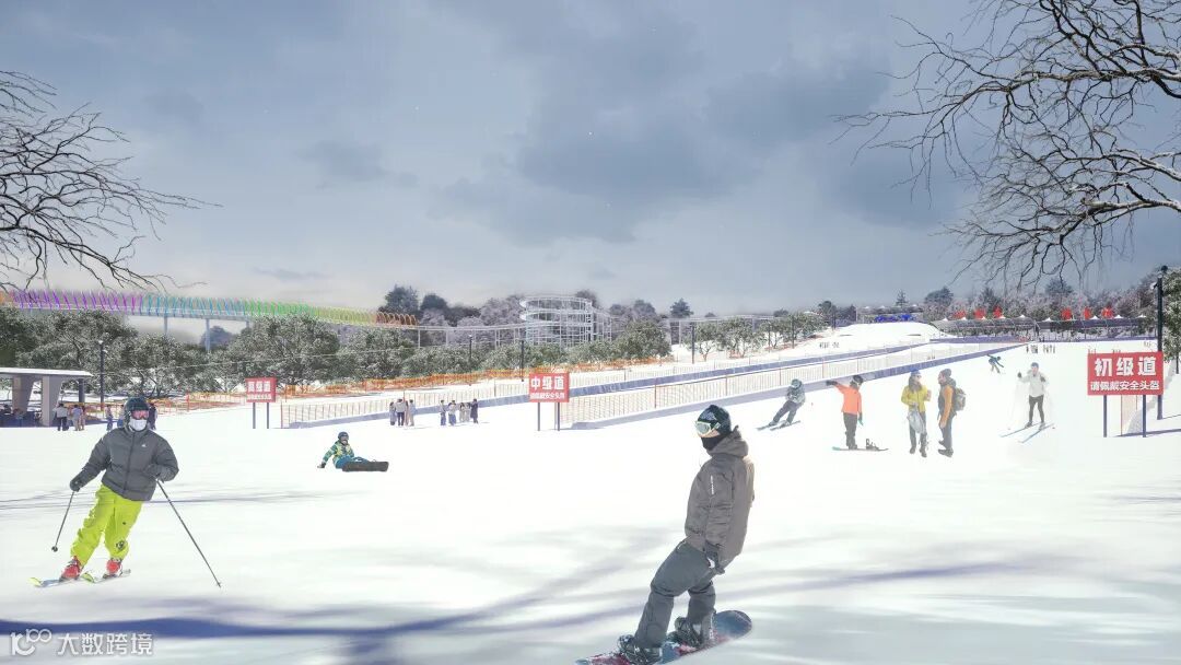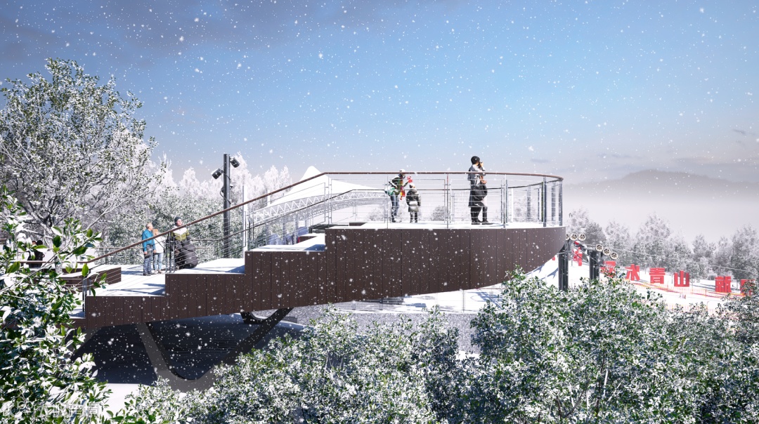 雪场还贴心设计了观景平台,高35米,冬季登台即可将整片银装素裹的雪场盛景尽收眼底,绝对是拍照打卡的绝佳机位。