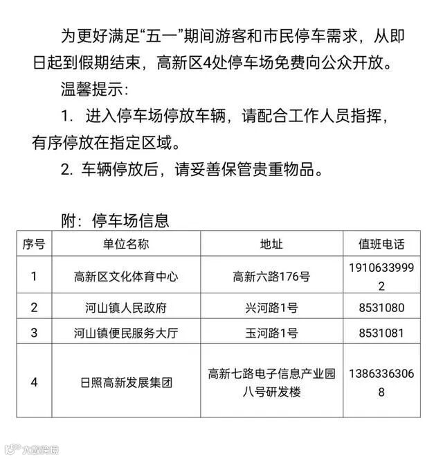 导读:日照高新区停车位开放公告