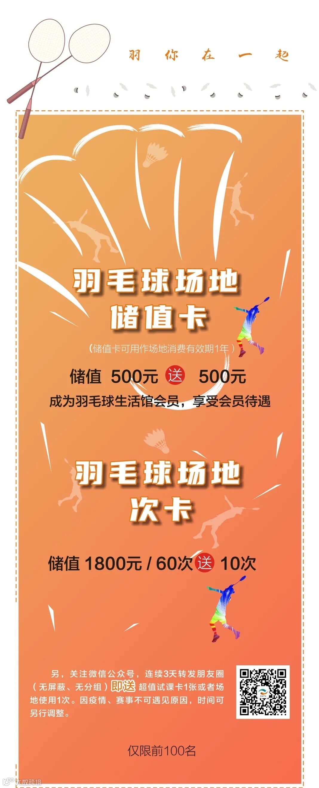 •羽毛球生活馆储值卡、次卡优惠活动