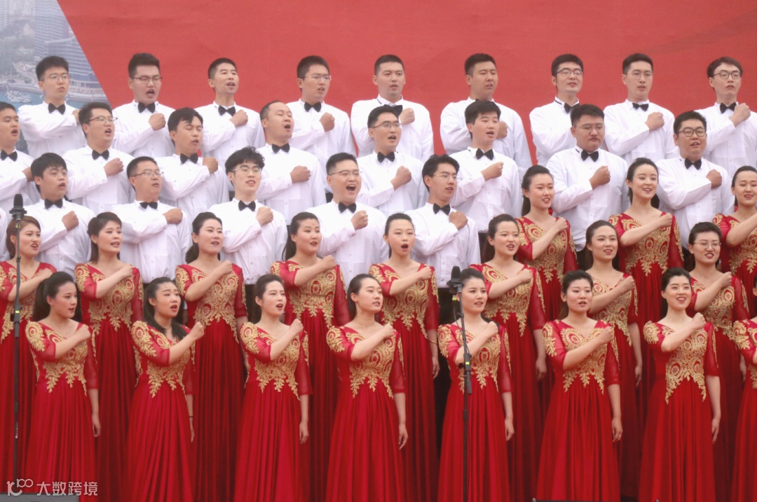 合唱队员们用饱满的激情,高亢嘹亮的歌声唱响《走向复兴》,唱出了“永远跟党走”的豪情壮志和“奋进新征程”的崭新风貌。