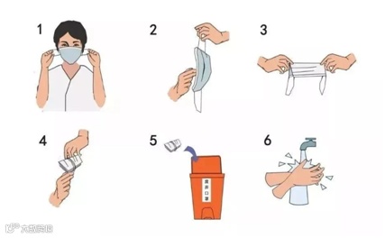 正确摘口罩的方法:通过挂绳取下,摘完口罩要洗手,没有洗手条件时最好先不摘口罩。