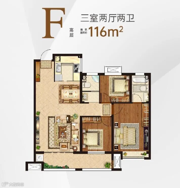 推出建面约103㎡精致小三居,建面约116㎡三房两卫,