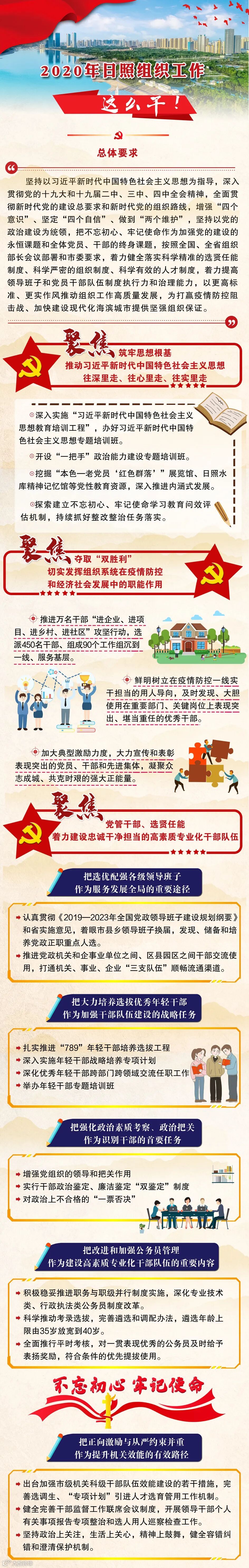 2020年是全面建成小康社会和“十三五”规划收官之年,是我省确定的“重点工作攻坚年”。贯彻全国、全省组织部长会议精神,落实省委、市委工作部署,日照组织工作这么干!