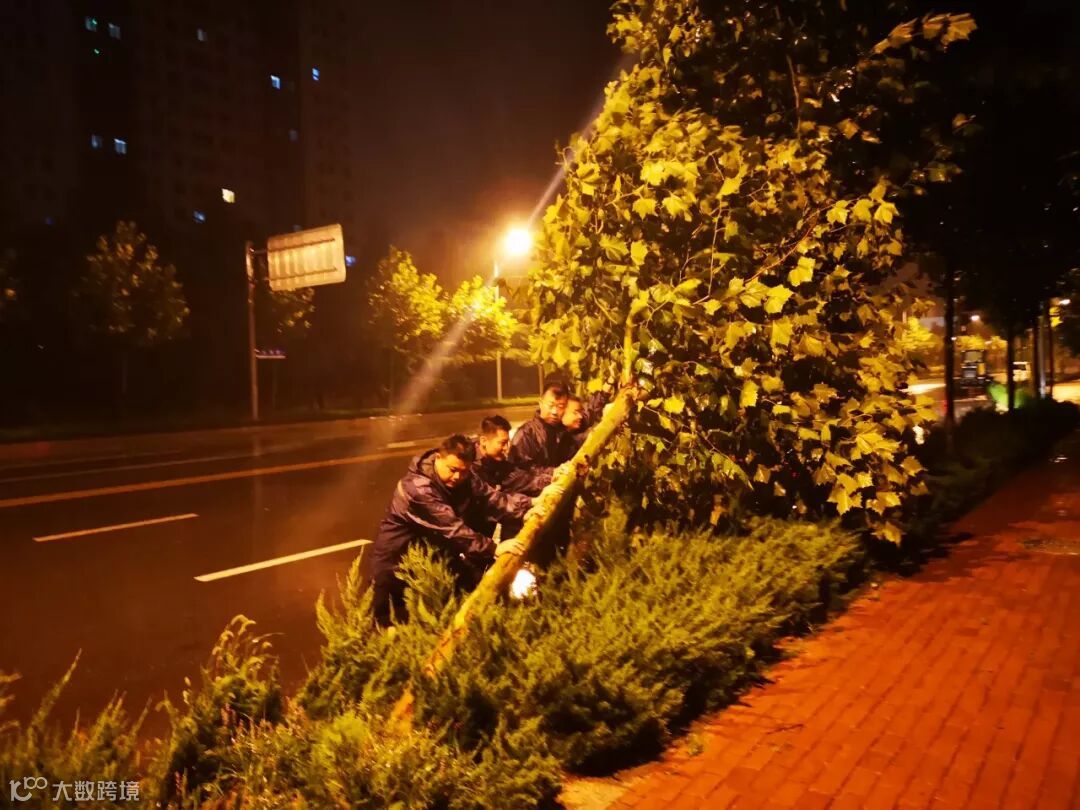 🔺 凌晨两点,高投市政工程公司对聊城路倒伏树木进行清理。