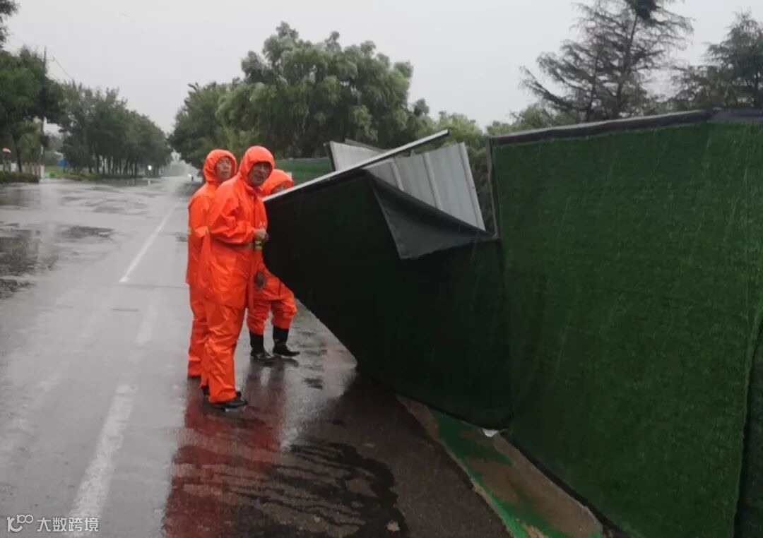 日照高投市政工程公司按照防汛工作预案,提前组织人员对辖区加强巡查,对易积水路段提前派专人负责看守,及时安放安全警示牌,把积水较多区域的雨水篦子、雨水井盖打开疏通并专人看守。
