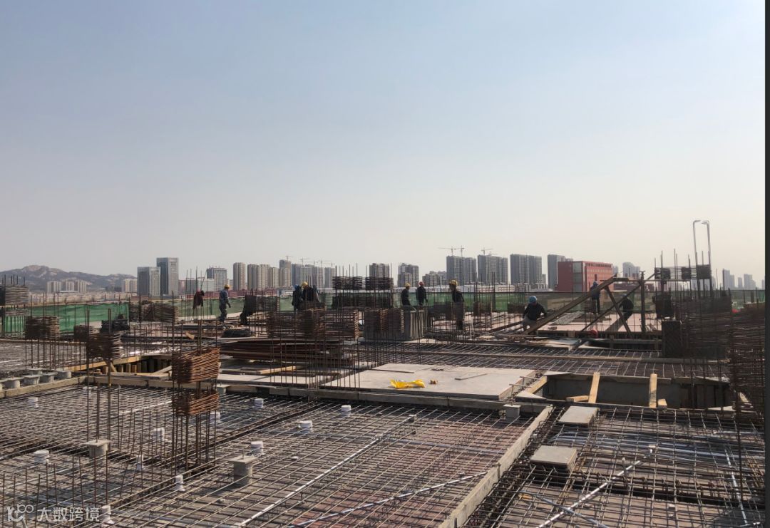 ▲市科技创新中心1#楼8层顶板钢筋绑扎作业