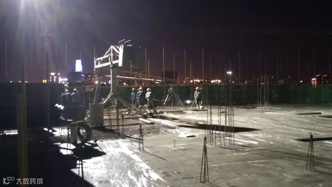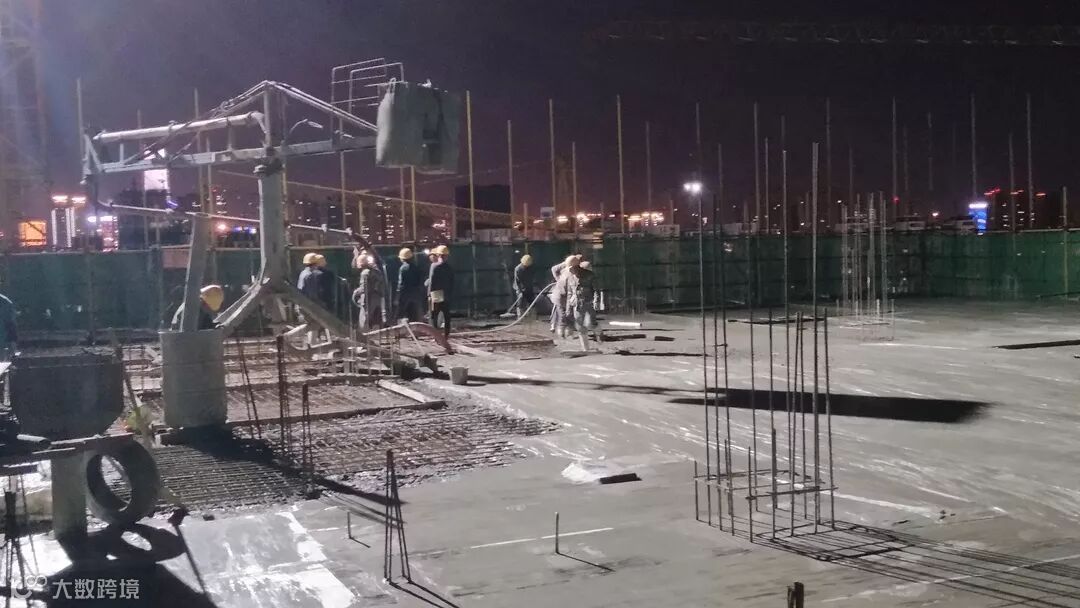 ▲工人24小时不停歇进行混凝土浇筑