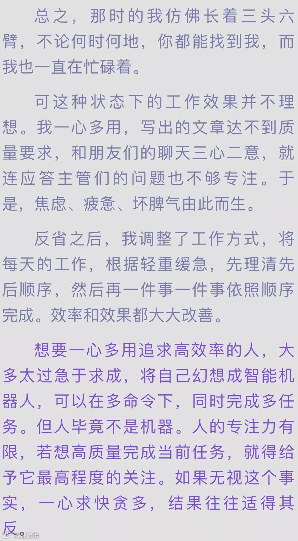 导读:曾经看过一篇文章,作者谈到自己是如何利用时间的。他说,某一天,在看50分钟电视新闻的同时,他还完成了另外几件事:烧咖啡、写了一封信、发出去5篇稿子、看了全球股票市场,还发了一封传真。