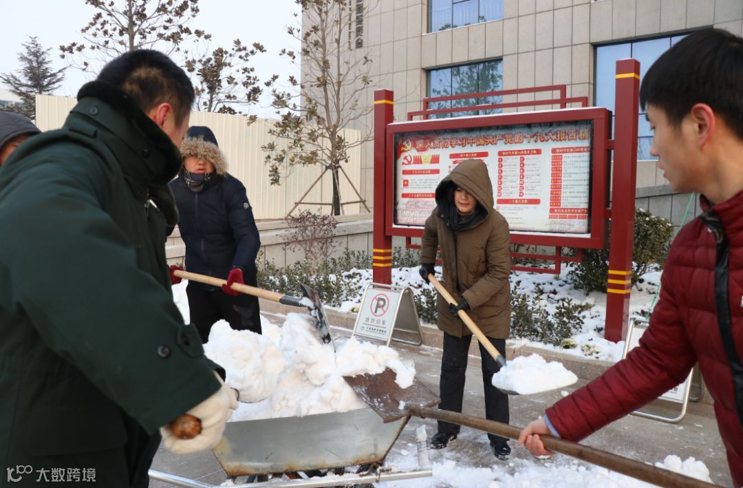 18日早上8点,集团86名员工不畏严寒、冒着寒风自发的来到入驻企业较多的1#生产研发楼,开始对1#生产研发楼前及道路两侧的积雪和坚冰进行清扫。