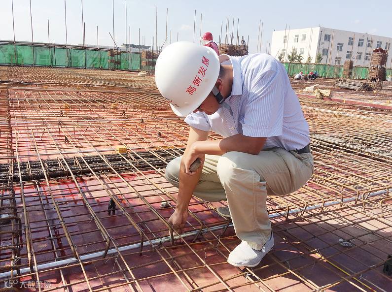 拿着量尺,对预埋管线敷设质量进行测量检查,而后胸有成竹地说,“管线质量没问题!”