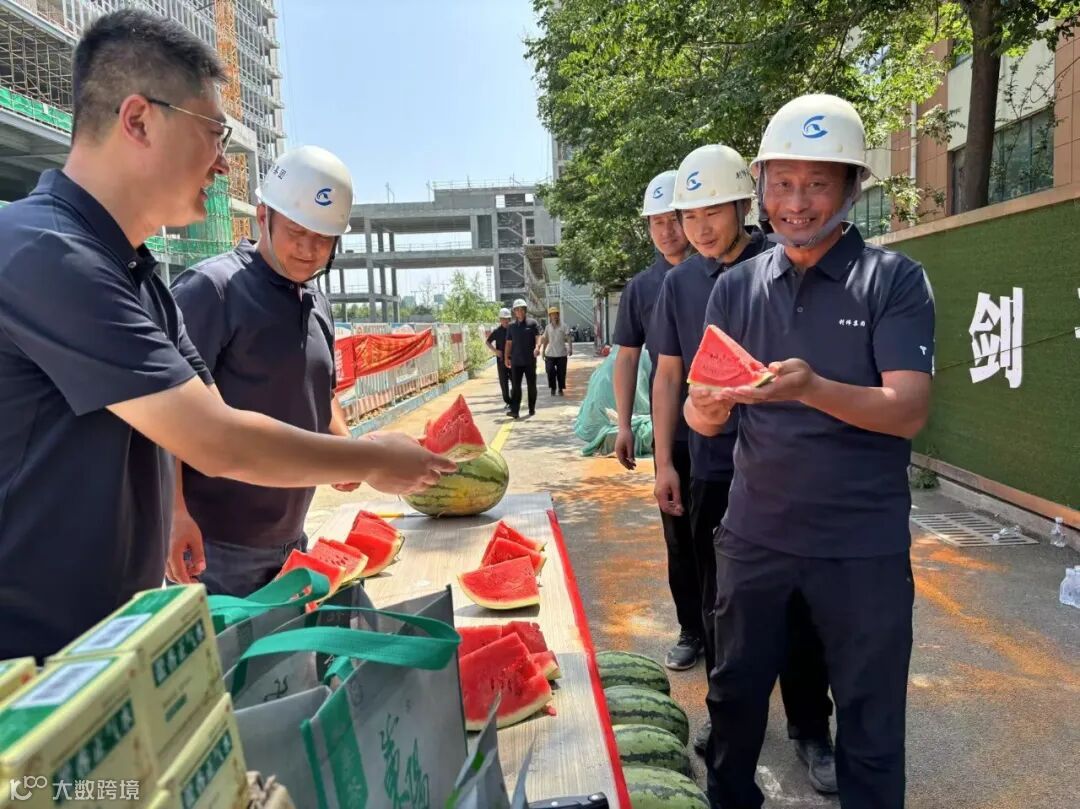 本次活动覆盖17个项目,惠及260余名员工,慰问物资包括降温茶、绿豆、藿香正气水、西瓜,以及集团最新下发的工装,由集团代表亲手将物资送到一线员工手中,并叮嘱大家注意防暑降温、劳逸结合、保障安全。
