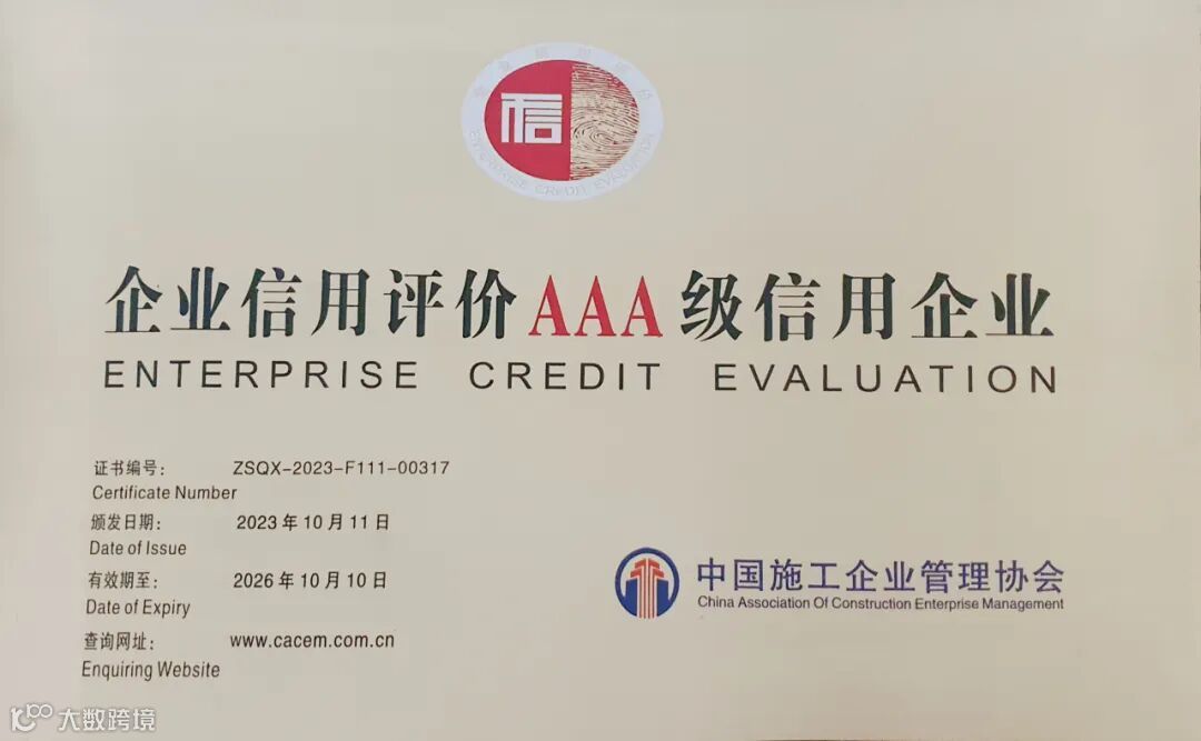 中国施工企业管理协会“2023年度工程建设AAA级信用企业”奖牌
