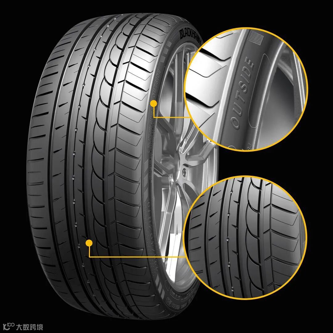 非对称花纹在轮胎侧面上,