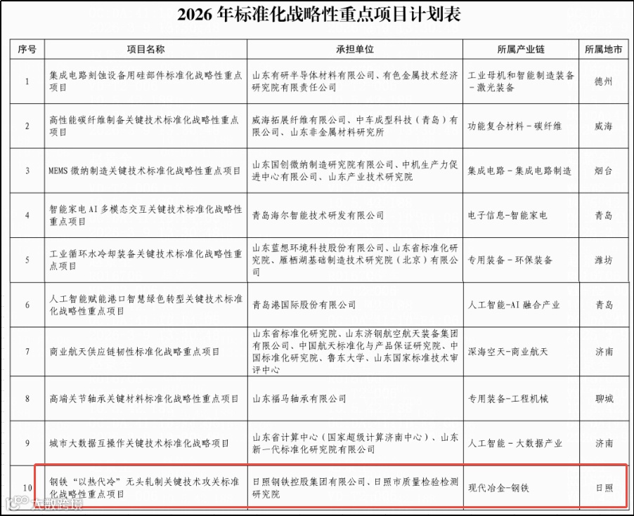 作为行业第一梯队企业,日照钢铁板带比超85%,ESP特色产品占比过半,已建成5条ESP生产线并突破多项关键技术。此次攻关将进一步提升创新能力,巩固其超薄带钢领域领先地位。目前山东无头轧制产业链态势良好,形成“山东样本”,成为全省钢铁产业转型升级的重要引擎。日照产业集群依托ESP技术实现高端化、绿色化、智能化突破,日照钢铁该工艺吨钢能耗、碳排放均降低70%、80%以上。同时产业链仍存在高端配套薄弱等短板。未来山东将聚焦短板,强化龙头引领,推动产业链向“高端化、智能化、绿色化”转型,打造世界级产业集群。