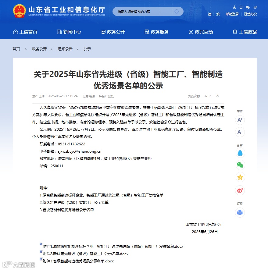 2025年6月26日,山东省工业和信息化厅发布了《关于2025年山东省先进级(省级)智能工厂、智能制造优秀场景名单的公示》。日照钢铁“全流程绿色智能工厂”成功通过评审,荣获先进级(省级)智能工厂称号。