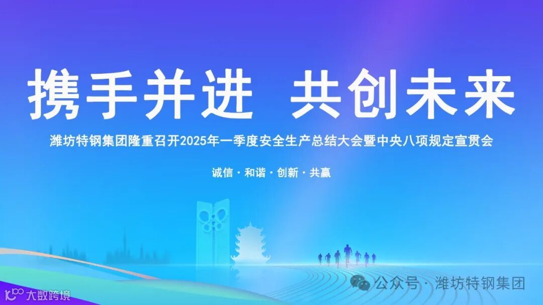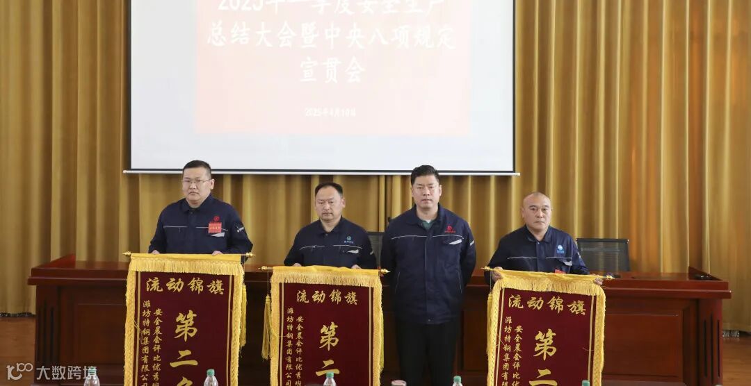 4月10日上午,潍坊特钢集团隆重召开2025年一季度安全生产总结大会暨中央八项规定宣贯会。会议特邀高新区应急管理中心副主任赵志余、中钢安环院党委副书记、工会主席王啸等政府及安环院代表出席。潍坊特钢集团党委书记、总经理于光富、各厂部主管领导、获奖单位代表出席会议。
