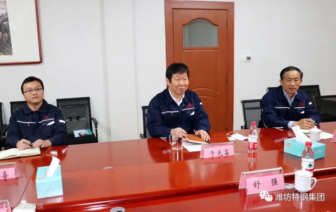 参观结束后,进行了座谈。座谈会上,舒强局长指出,潍坊特钢集团在是一个在高新区有影响力的大企业,今天来到企业厂区对钢铁企业的管理有了更加全新的认识,潍坊特钢集团在全省甚至全国行业领域内走在前列,感谢特钢集团及于光富董事长对高新区税务工作的充分肯定和支持。