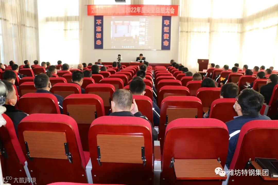 1月7日,潍坊特钢集团以线下、线上直播同时进行的形式组织召开2022年四季度暨2022年度安全工作总结大会,总结回顾2022年度各项安全管理工作,对取得优异成绩的先进集体和个人给予表彰,同时结合集团公司发展实际,安排部署2023年度安全工作任务,确定工作目标。集团董事长、总经理于光富及各分厂、部门负责人、安全管理人员等参加了本次会议。