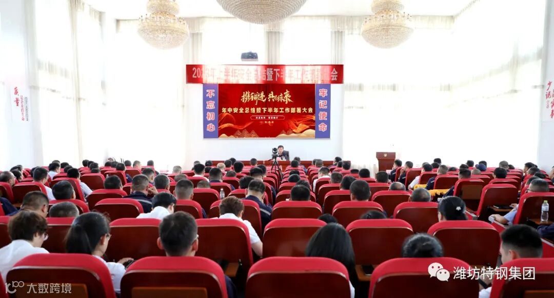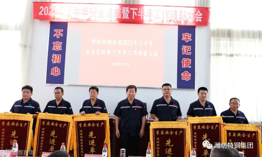7月9日上午,潍坊特钢集团2023年上半年安全工作总结暨下半年工作部署大会在集团公司办公楼会场召开。大会上,集团公司董事长、总经理于光富系统回顾了上半年的各项工作,认真系统查找工作中存在的问题与不足,全面安排部署了下半年的任务及目标,号召全体干部、职工振奋精神,找准工作着力点和努力方向,冲刺年终目标。