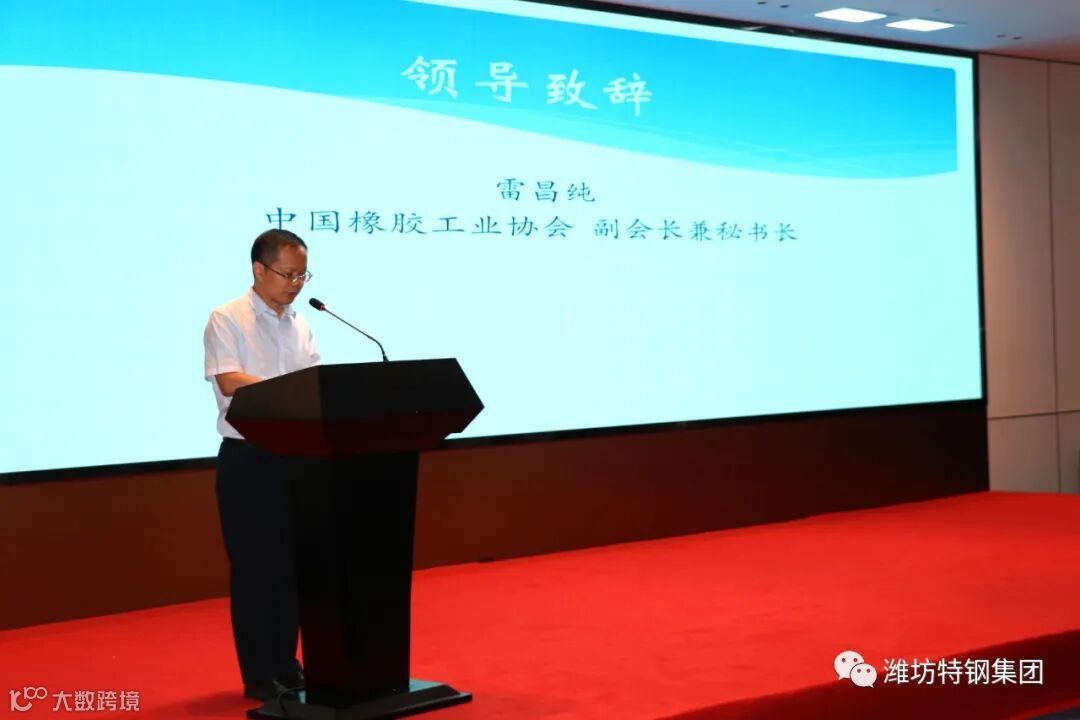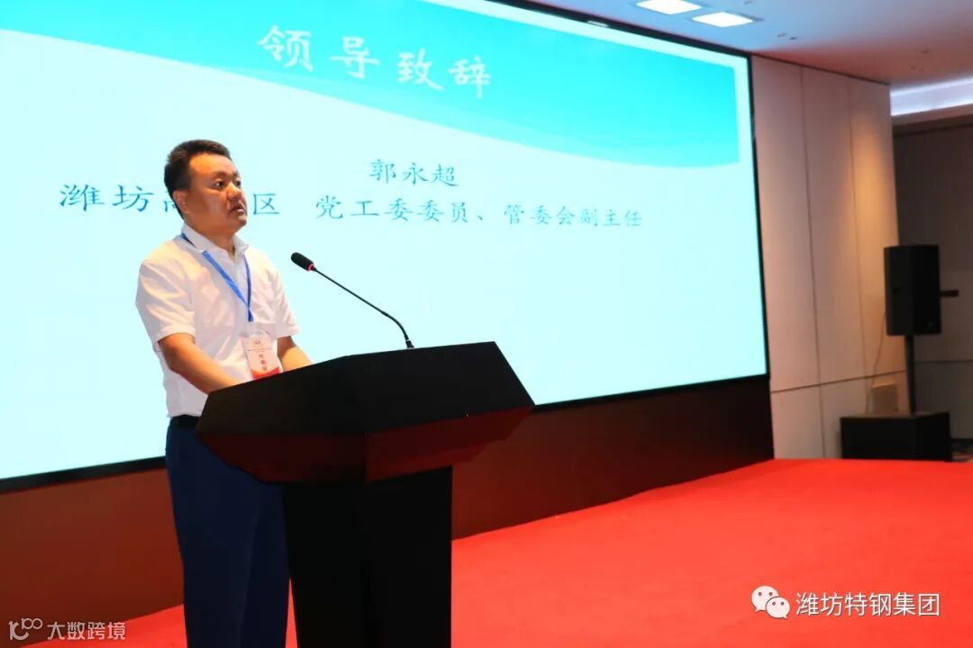 潍坊市高新区党工委委员、管委会副主任郭永超致辞,表示潍坊市高新区将充分利用良好的资源优势、营商环境和产业禀赋。对本次行业盛会选择在潍坊召开表示感谢,希望潍坊特钢集团与在座的广大企业合作共赢、创新突破,共享发展机遇、创造美好未来。