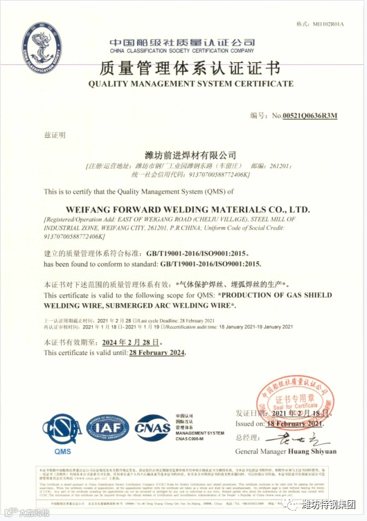 2021年1月18日至19日,中国船级社质量认证公司3名资深审核专家正式对我公司潍坊前进焊材有限公司组织质量管理体系认证审核。审核期间,3位审核专家分3组深入公司各相关职能部门、炼铁厂、炼轧厂生产一线和生产单位开展评价审核。在审核过程中,审核专家根据评价细则要求,通过交流座谈、交叉审核、查阅资料等方式,获得相关评价证据,对公司的质量管理体系和管理运营方面的绩效进行了全方位的评价。各参检分厂、部门积极响应、准备充分、资料完善,管理成效得到了审核组的充分肯定。