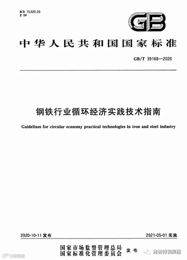 由我公司参与起草制定的《钢铁行业循环经济实践技术指南》、《循环经济评价 钢铁行业》两项国家标准于2020年10月1日正式发布,2021年5月1日正式实施。