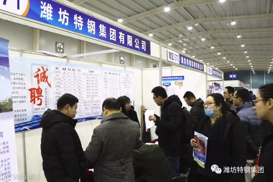 上午8时许,潍坊金宝国际会展中心招聘现场已人头攒动,一波波的人潮涌入招聘会。求职者来到我公司展位前,详细了解企业招聘岗位、工作内容、福利待遇等问题,工作人员一一给予耐心解答。目前,潍坊特钢集团正处于企业发展的关键时期,人才需求量巨大,此次交流洽谈会共提供了26个管理岗位,需求人数超过三百人。截止活动结束,共收取求职者简历两百余份,初步达成求职意向者120人。