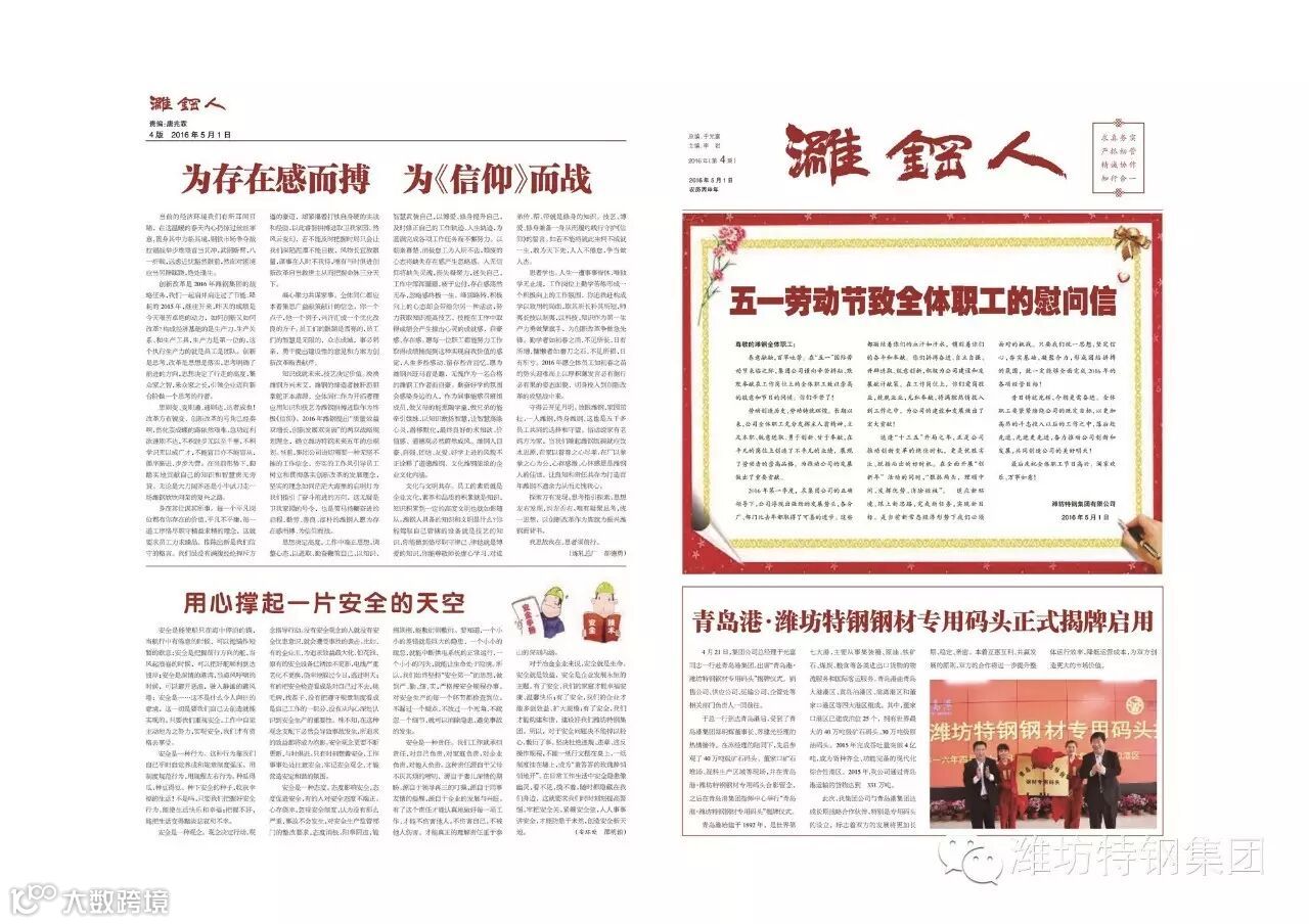 导读:企业内刊《潍钢人》2016年第四期(微信版) 搜索“wftgjt”,关注潍坊特钢集团公众号!