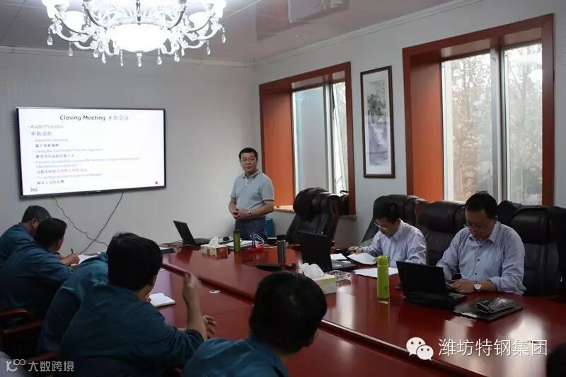 23日下午14:00,本次现场审核的末次会议正式召开,审核组认为潍坊特钢集团有限公司对ISO/TS16949:2009的建立、贯彻工作基本到位,运行基本有效,并宣布了审核中开具的4项轻微不符合项,在不符合项得到有效整改并书面验证后,将予颁发证书。