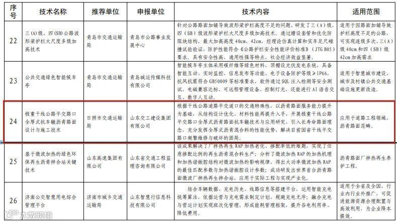 此次入选,不仅是对山东交建集团在路面工程领域创新实力的权威认可,也为全省干线公路品质提升提供了可复制的技术范式。未来,集团将坚持科技赋能、创新驱动、绿色引领,持续推进“四新技术”成果转化,为干线公路品质升级提供更多“交建方案”。