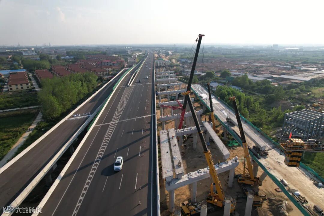 公铁立交作为全线重点控制性工程,全长691米,紧邻疏港高速匝道,与铁路、村道、燃气管线多重交叉,大型设备移动受限。山东交建集团从工艺工法、质量控制、安全交底等方面入手,组织专家论证,优化吊装路径,采取大吨位吊车协同“抬吊”施工方式,确保工程顺利推进。