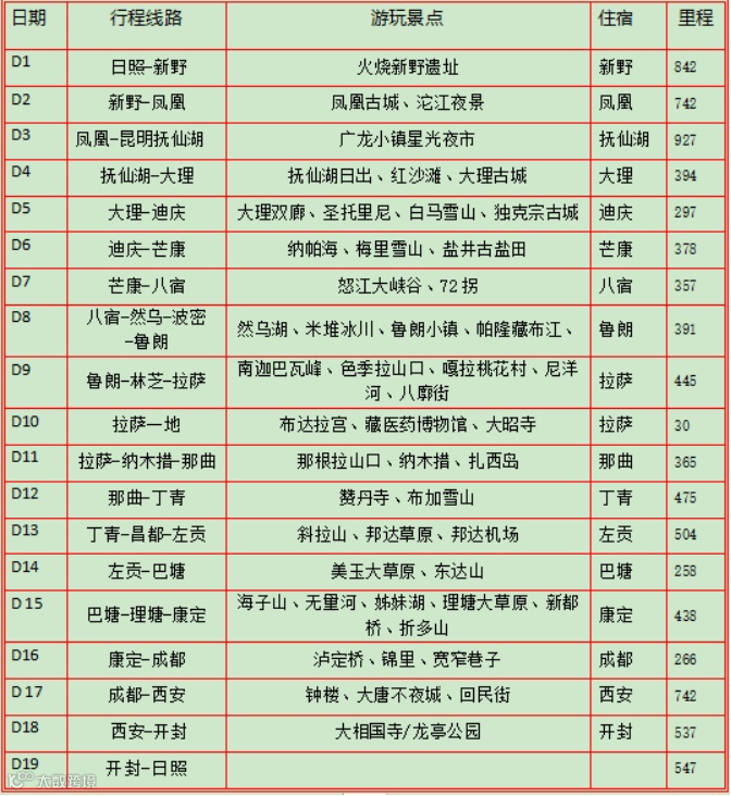 此次旅游线路的推出,不仅是对新兴旅游市场的大胆开拓,也是在“客运+旅游”模式上的新融合。本次“秘境西藏、柔美云南”之旅,线路途经50余个景区景点,涵盖了进出西藏的精华部分,团费包含了旅途中住宿、景点门票等,乘客们可以在这趟旅途中边走边玩,尽情欣赏318国道上的游趣。从日照出发,一路经过新野、凤凰、昆明抚仙湖、大理、迪庆等地,最终抵达拉萨,返程途径纳木措、那曲、丁青、昌都等景点,最后经成都、西安、开封返回日照。这种 “慢游”的旅行方式,改变了传统旅游“上车睡觉、下车拍照”模式,让游客真正做到边走边玩。