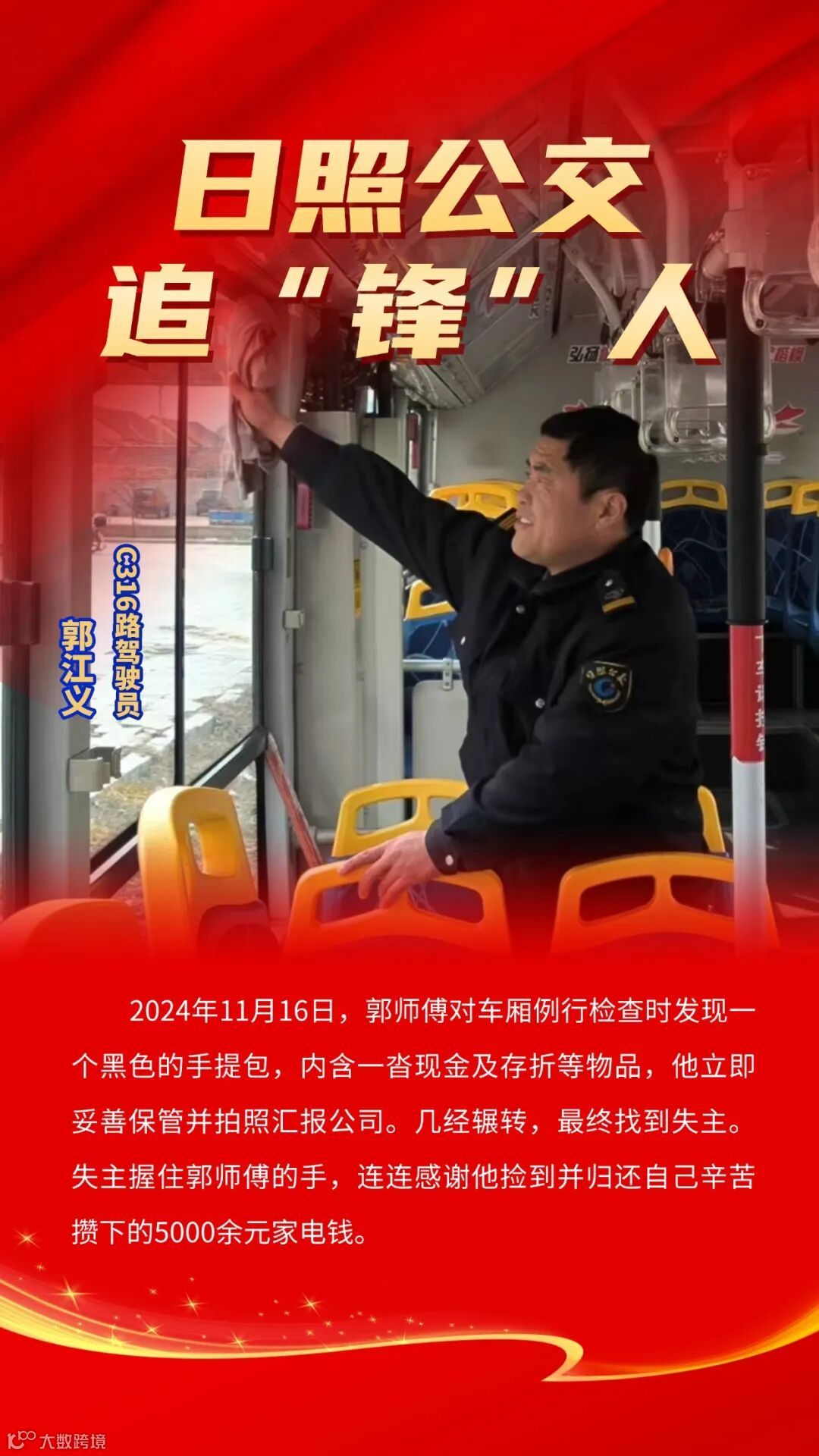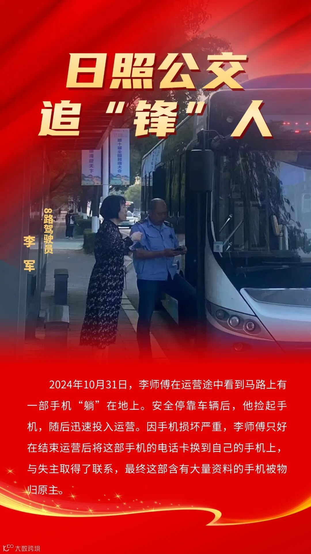 3月5日是雷锋日,也是中国青年志愿者服务日。对于日照公交驾驶员来说,学雷锋从不拘泥于特定的日子,而是渗入工作的点点滴滴,萦绕生活的时时处处。日照公交追“锋”人,用实际行动在小小的十米车厢书写担当奉献的动人篇章,描绘闪耀人性光辉的暖心画卷。