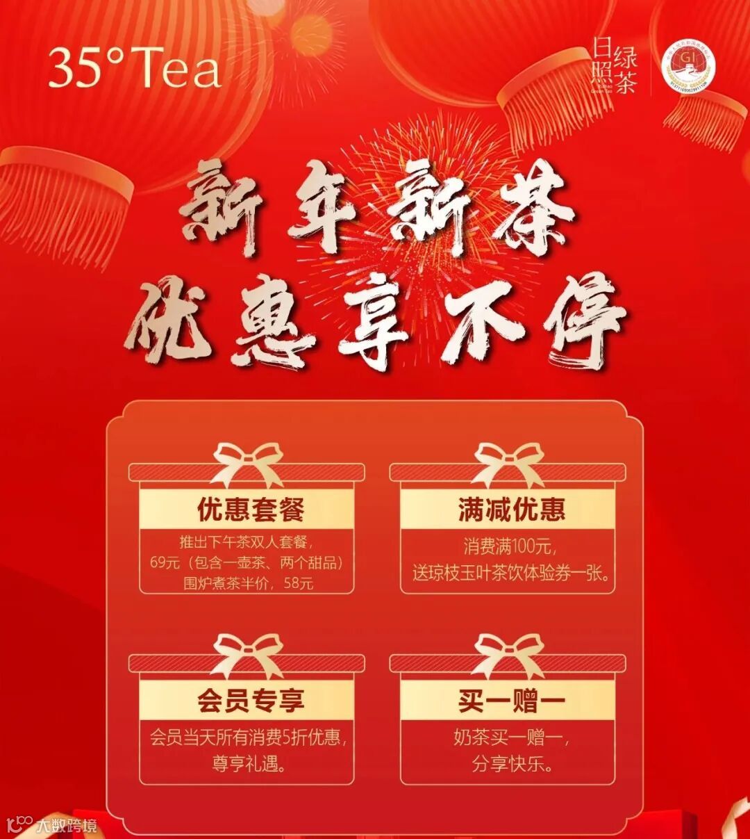 前往店内拍照打卡并发抖音,参与“我与35°Tea一起迎新年”话题,即可领取海天红霞一杯,数量有限,先到先得,限前2025杯哦!