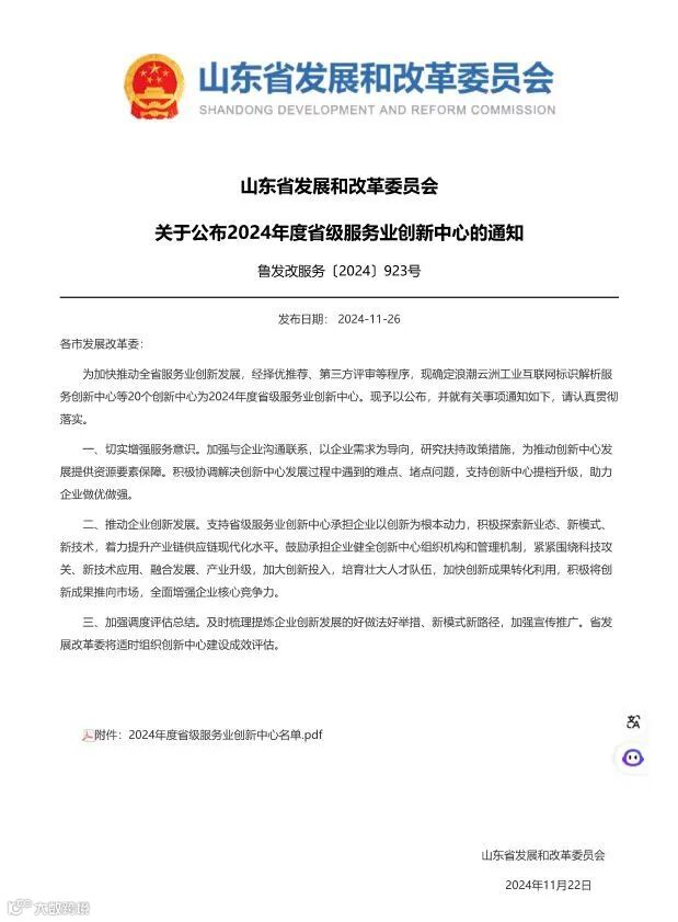 近日,山东省发展和改革委员会公布了2024年度省级服务业创新中心认定结果,集团蓝能科技公司技术创新中心成功入选。