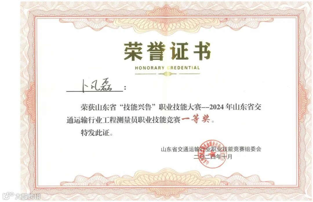 10月20日,山东省“技能兴鲁”职业技能大赛——2024年山东省交通运输行业工程测量员职业技能竞赛在滨州成功举办。山东交工建设集团荣获“团体一等奖”“一等奖选手培养单位”,同时,金浩、卜凡磊获个人一等奖,李涵获个人三等奖。