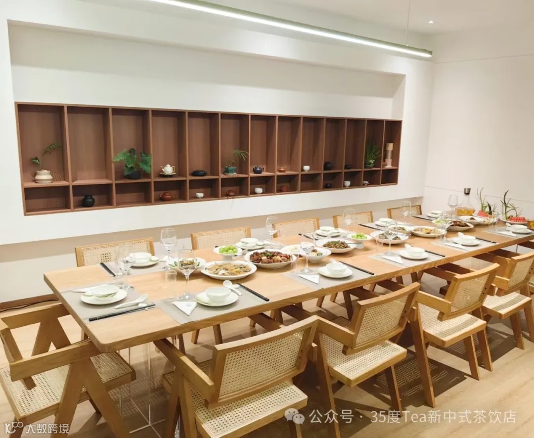 35°Tea新中式茶饮店二楼,设有雪青、雨青、露青、霜青、二楼功能区五个各具特色的茶空间,每个空间都蕴含着深厚的文化底蕴,让人流连忘返。