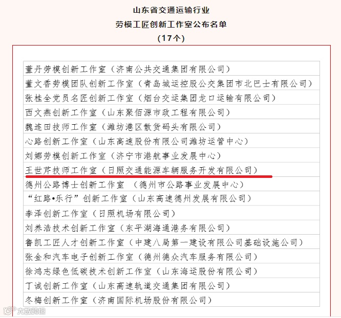 喜报!集团车辆服务公司王世芹技师工作室获评“山东省交通运输行业劳模工匠创新工作室”荣誉称号