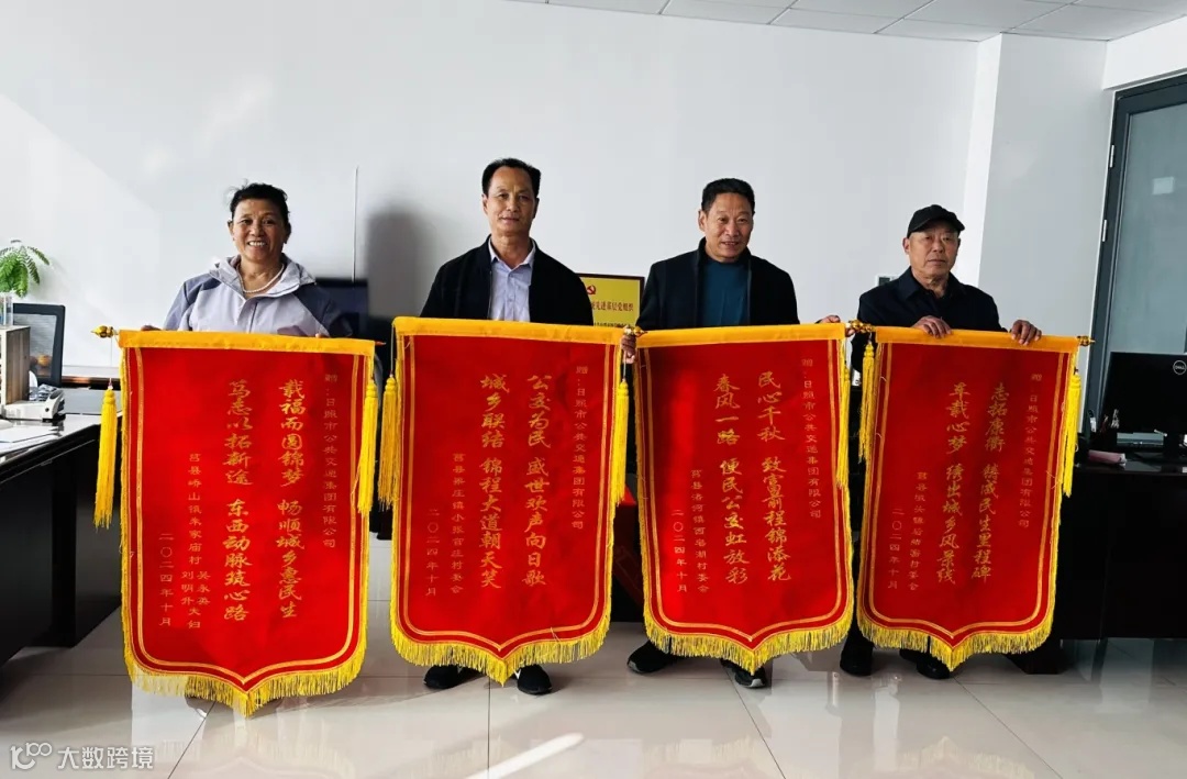 “C211路因修路停运期间,我从朱家庙子倒车到日照得一半天;线路恢复以后,用不了两个小时就能直达。感谢公交集团,为我们老百姓提供了这么便利的出行条件。”10月31日9时许,热心乘客刘明升等一行四人来到菏泽路公交调度中心,将饱含肯定与赞扬的四面锦旗交到公交集团工作人员手中。