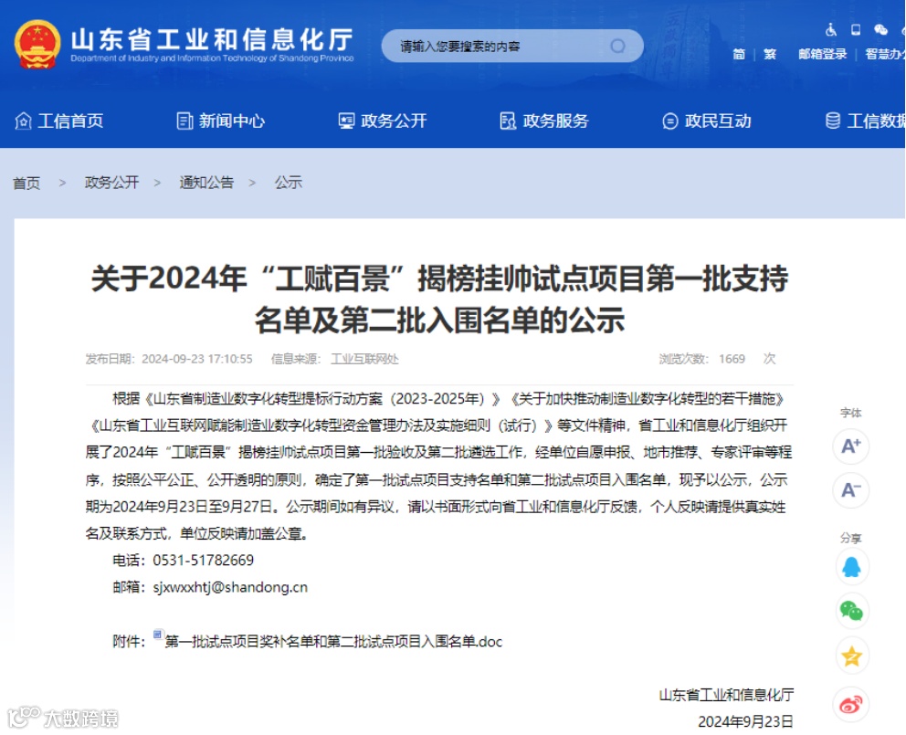 “工赋百景”揭榜挂帅是山东省强化制造企业数字化赋能、提升产业链数字化水平的重要举措,按照“行业出题、平台答题”思路,面向电子信息制造、装备制造、原材料、消费品和特色产业集群等重点行业和领域,聚焦研发设计、生产制造、运营维护、经营管理等环节,通过揭榜挂帅方式,支持工业互联网平台等数字化转型服务商研发一批先进适用、可复制推广的典型场景解决方案,并在制造业企业中进行示范应用,“1+N”带动提升行业整体数字化水平。