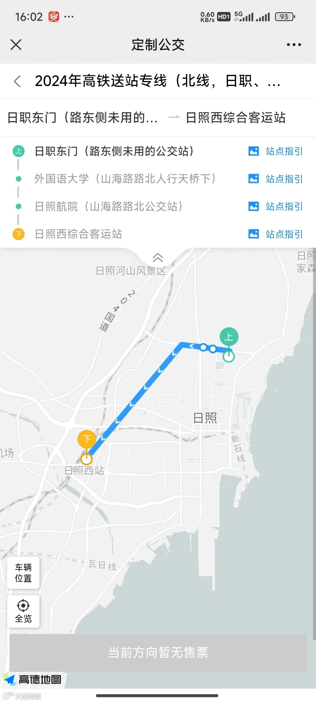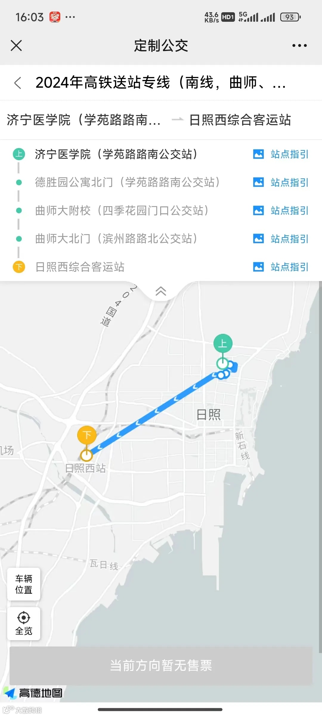 从大学城直达日照西站高铁进站口,