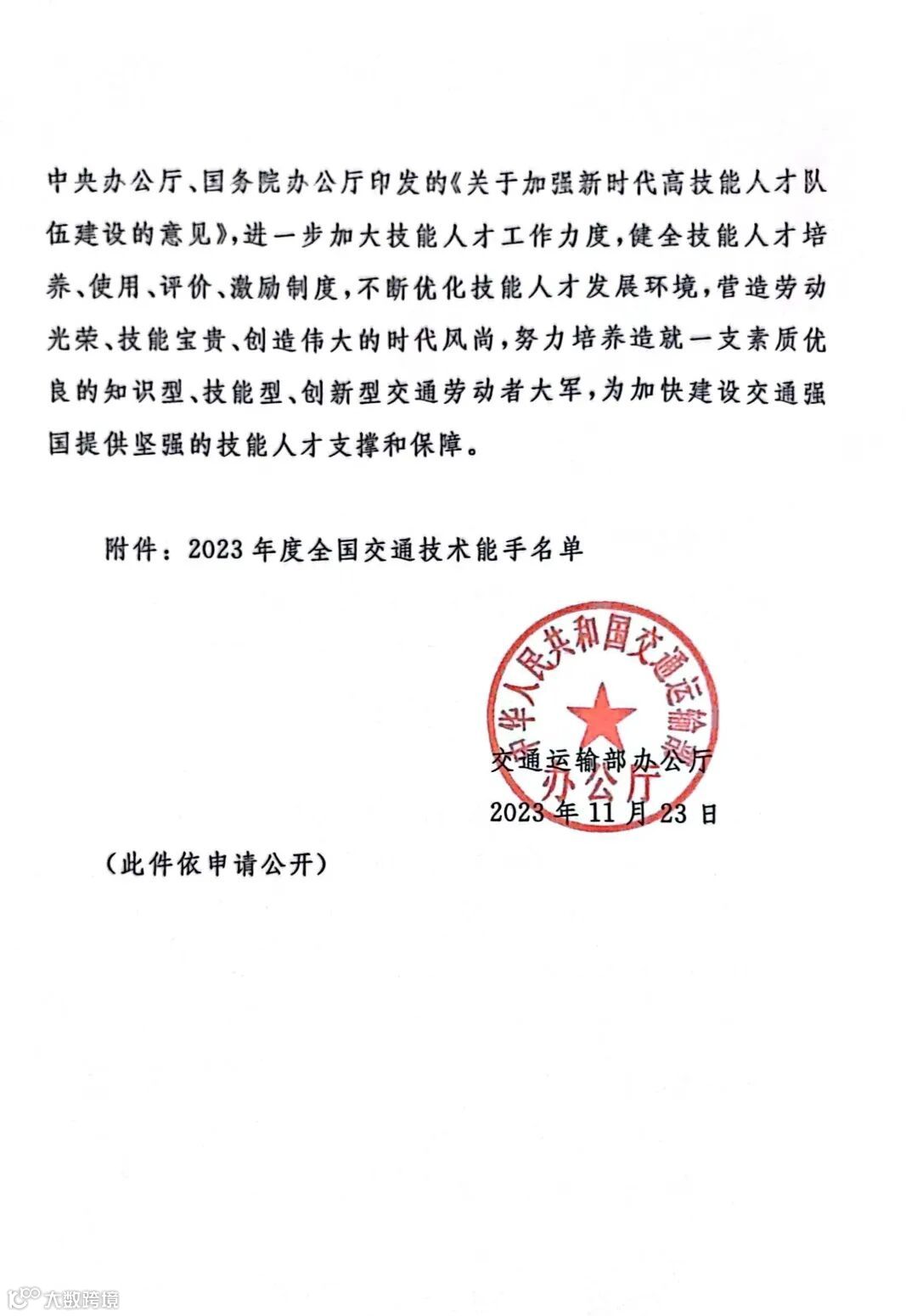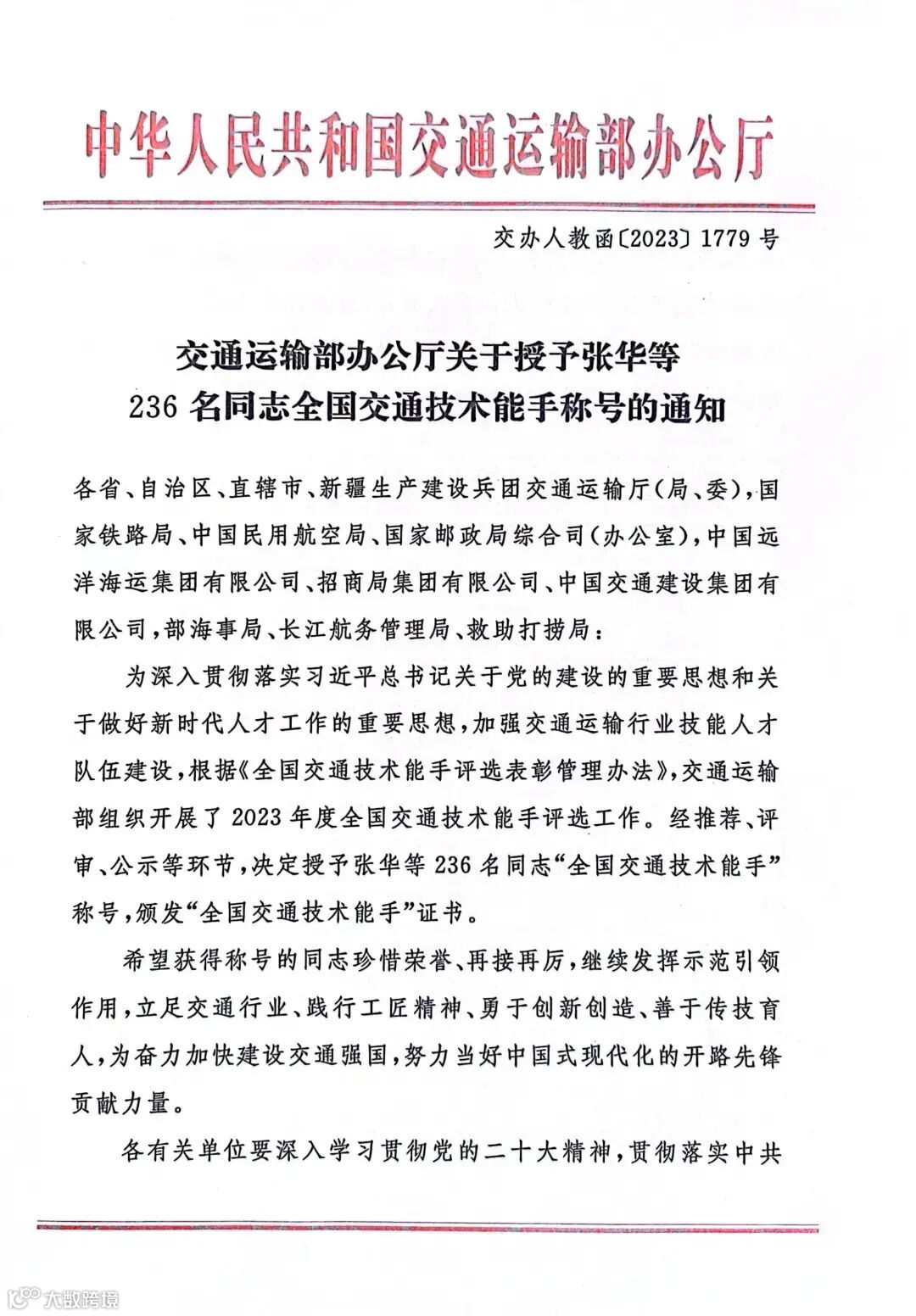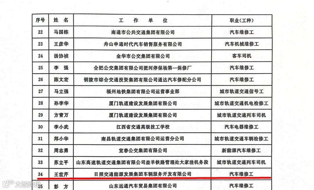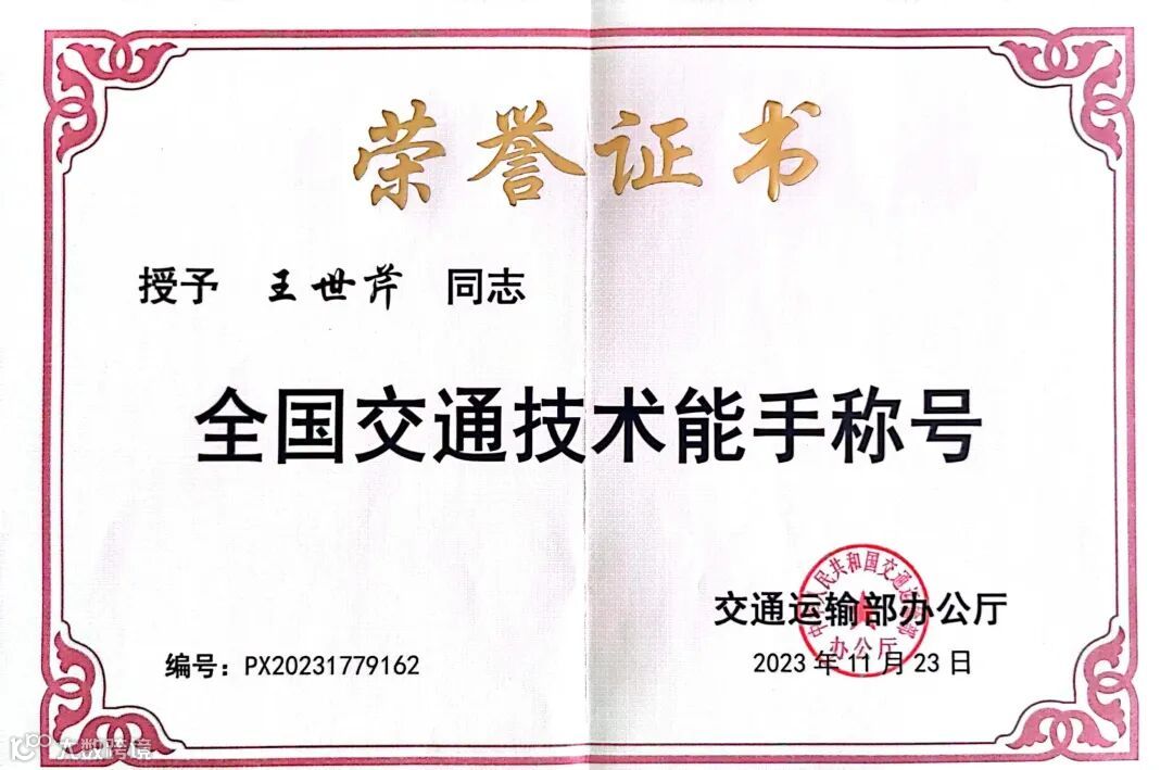 近日,交通运输部公布了2023年度全国交通技术能手评审结果,集团车辆服务公司王世芹荣获“全国交通技术能手”称号。