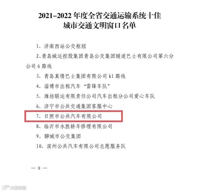 近日,省交通运输厅公布2021—2022年度全省交通运输系统“百佳文明窗口”名单,集团公共汽车公司被评为全省交通运输系统“十佳城市交通文明窗口”。