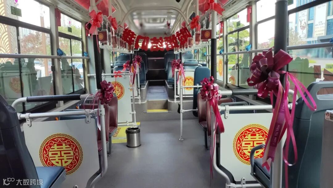 “521路公交婚车”是在一辆核载79人的新能源纯电动公交车基础上装饰而成。车辆前后路牌显示“新郎姓名+521路+新娘姓名”,每台车配备一名驾驶员,新人可自主选择装饰车辆,车载电视可播放新人提前制作的视频或音乐,公司还可以针对用户其它需求进行设计,满足个性化需求。