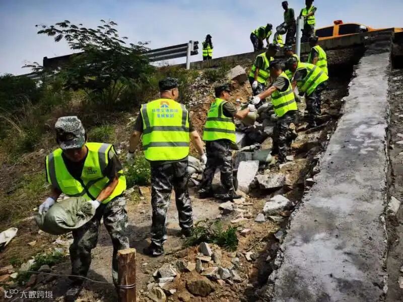 本次演练模拟夏季极端强降雨,国省道部分路段出现路基水毁、行道树倒伏、边坡塌方等险情,防汛抢险人员快速处置险情,保障安全畅通。