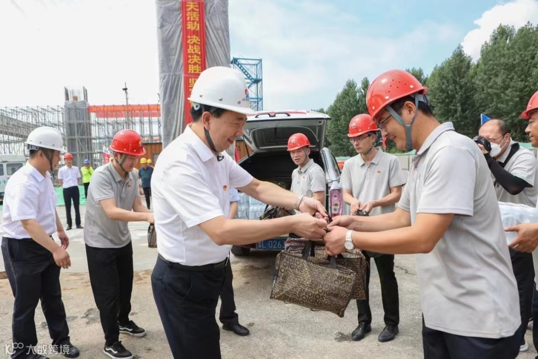 市总工会领导慰问了南沿海公路日钢段高架工程项目部施工一线人员,送去了慰问物资和防暑降温知识手册。