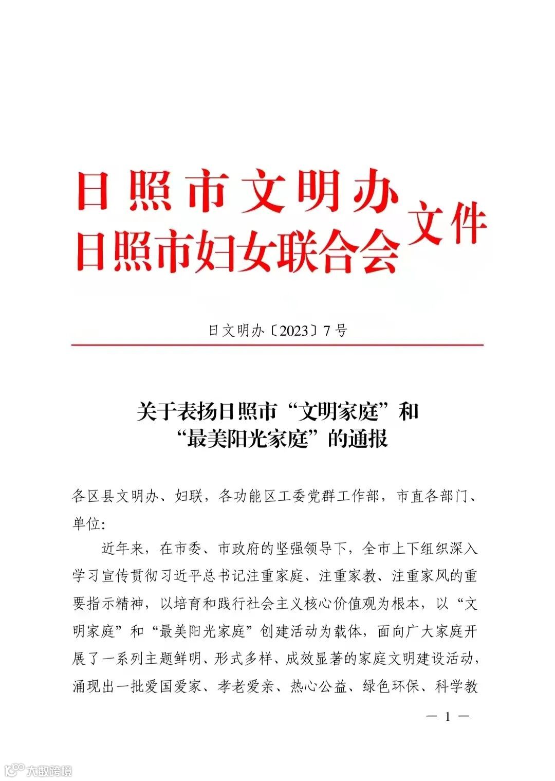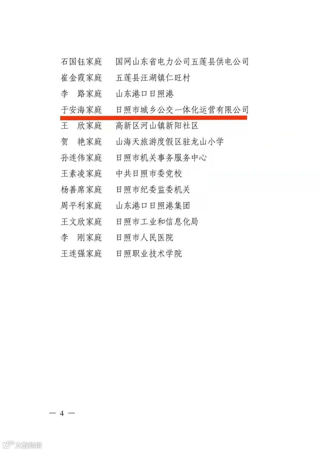 5月15日,市文明办、市妇女联合会公布2023年日照市“文明家庭”和“最美阳光家庭”名单,城乡一体化公司公交驾驶员于安海家庭荣获“文明家庭”称号。