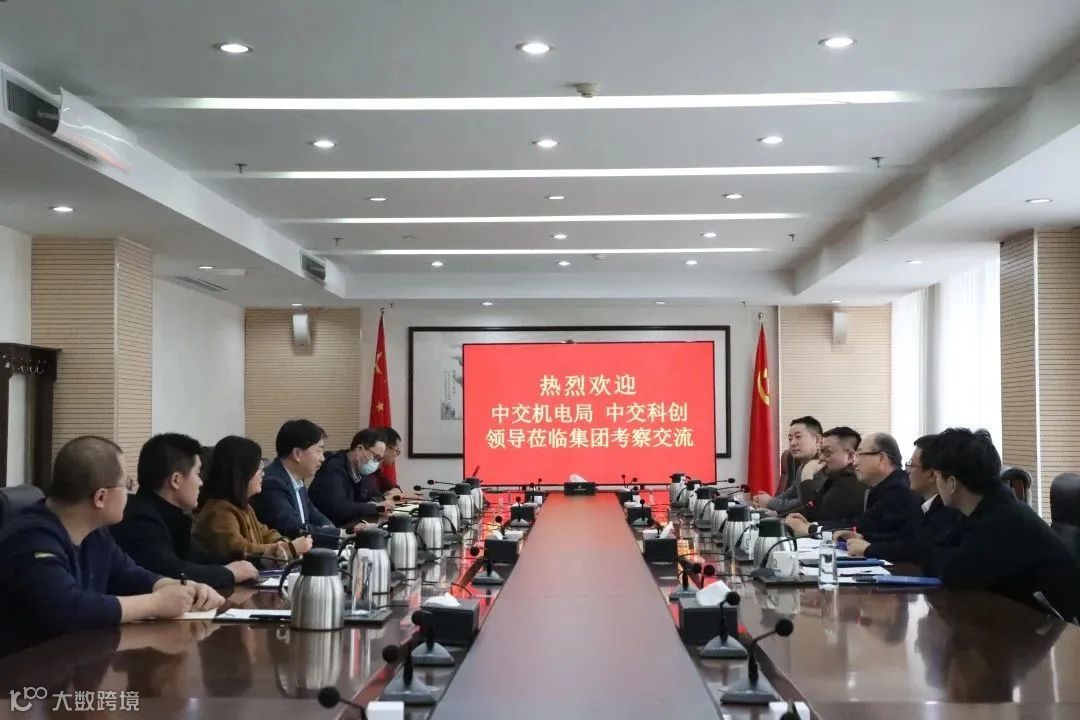 3月3日,中交机电工程局有限公司党委委员、副总经理靳青松,中交科创科技有限公司副总裁常春一行5人到集团考察交流,集团党委副书记、总经理王夫成,副总经理杨杰陪同。
